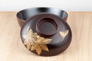 もみじの沈金が入った吸物椀。お正月やハレの日に、豪華なもみじの吸物椀で華やかに。漆器の吸物椀は、蓋を開ける瞬間まで、料理の温かさや香りを閉じ込めてくれます。また、蓋を裏返した時にも、ワンポイントの沈金が目と心を楽しませてくれます。